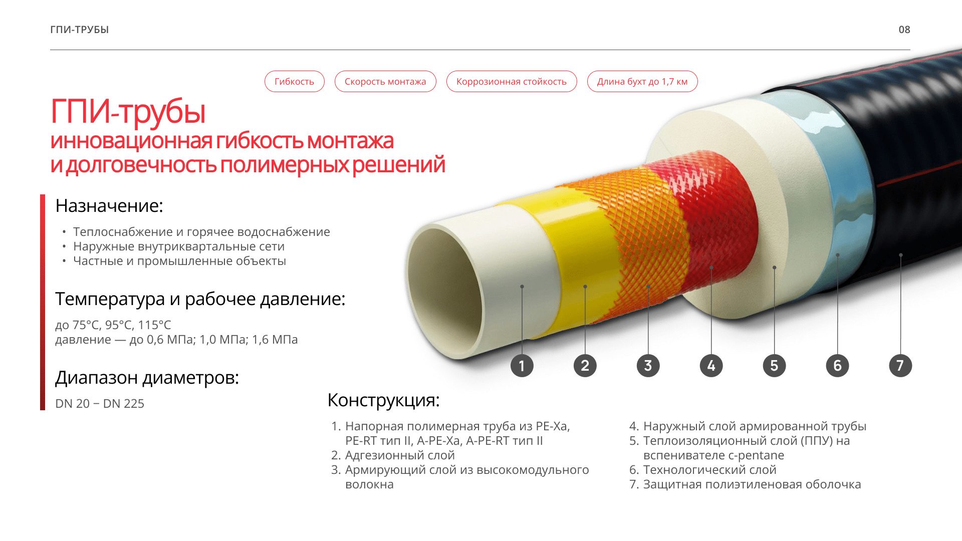 Труба PE-RT тип II 95˚C 1,0 МПа 50/110
